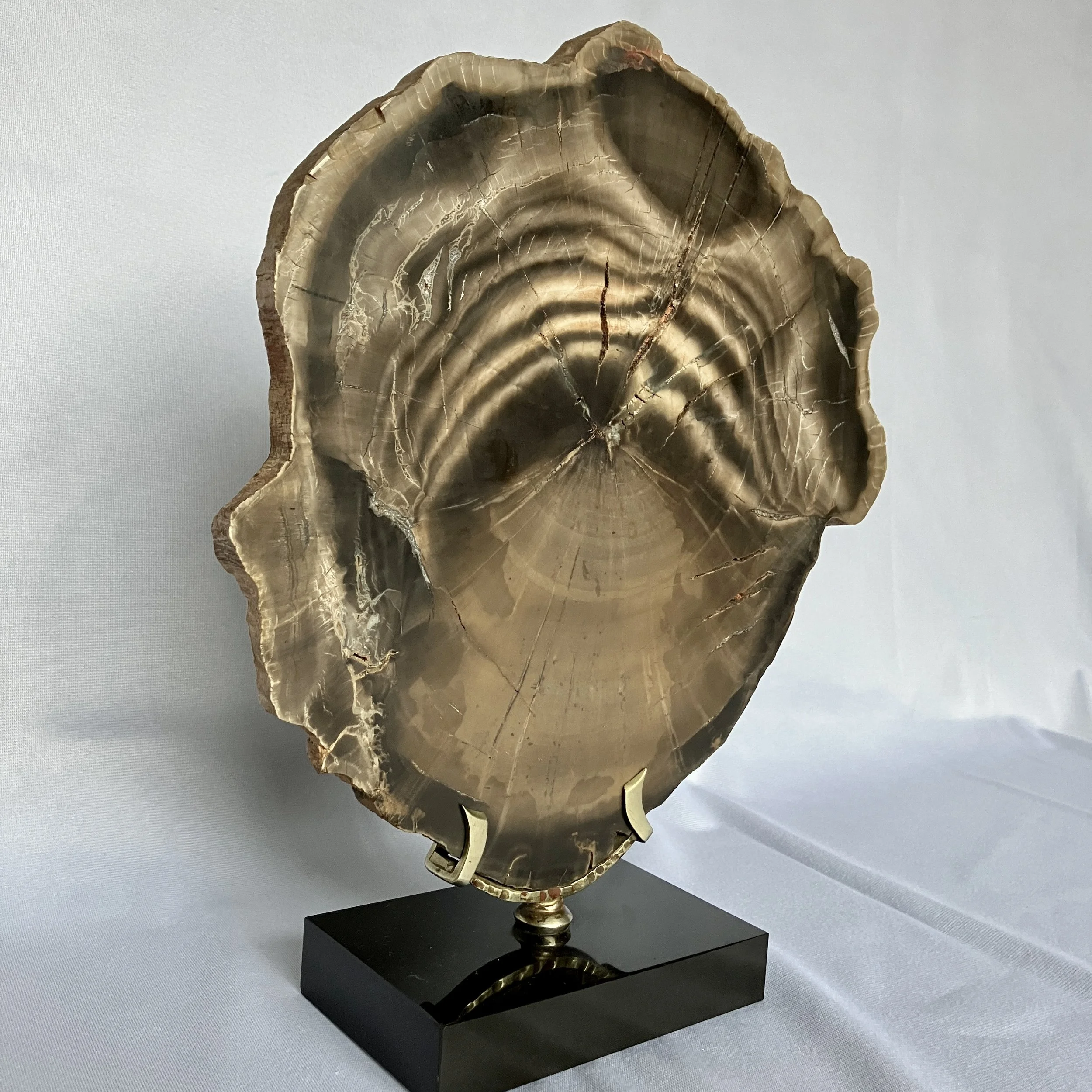 This decorative piece of natural history is not just a conversation starter, but a tangible connection to the earth’s ancient history. It displays attractive smoky tones that add a touch of mystery and allure. The specimen retains its original petrified bark, a testament to the remarkable process of petrification that has preserved it for millions of years.
