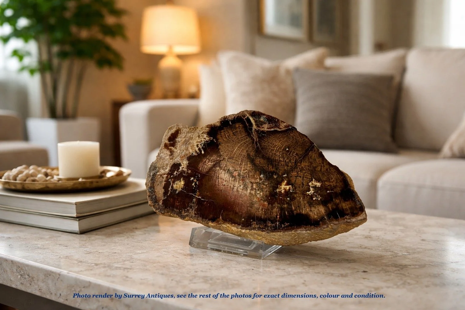 Dating back to the Triassic period, approximately 120 - 240 million years ago, this specimen is not just a decorative item but a slice of prehistoric life. Its timeless beauty and geological significance make it a captivating addition to both antique collections and contemporary spaces, promising to enhance any interior with its unique character and historical charm. Whether placed in a study, living room, or office, it serves as a conversation starter and a daily reminder of the Earth’s dynamic history.