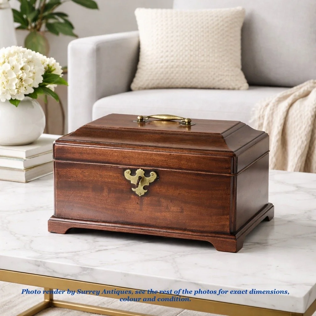 This handsome caddy, with its rich mahogany hues and graceful aging, remains in very good original condition. It is not merely a utilitarian object but a piece of history, evoking the elegance and refinement of the Georgian era. A true collector’s item, it promises to be a conversation starter and a cherished heirloom for generations to come.