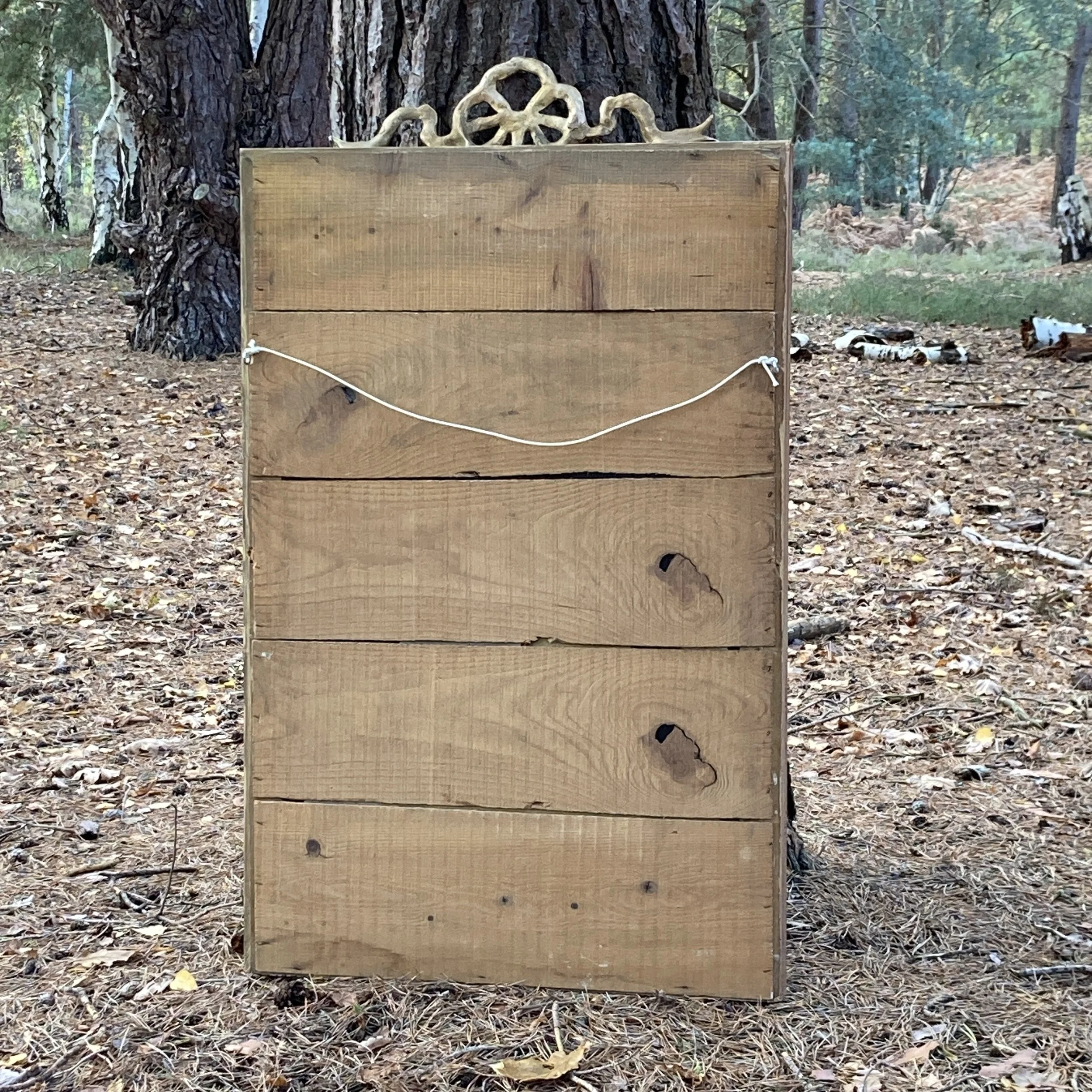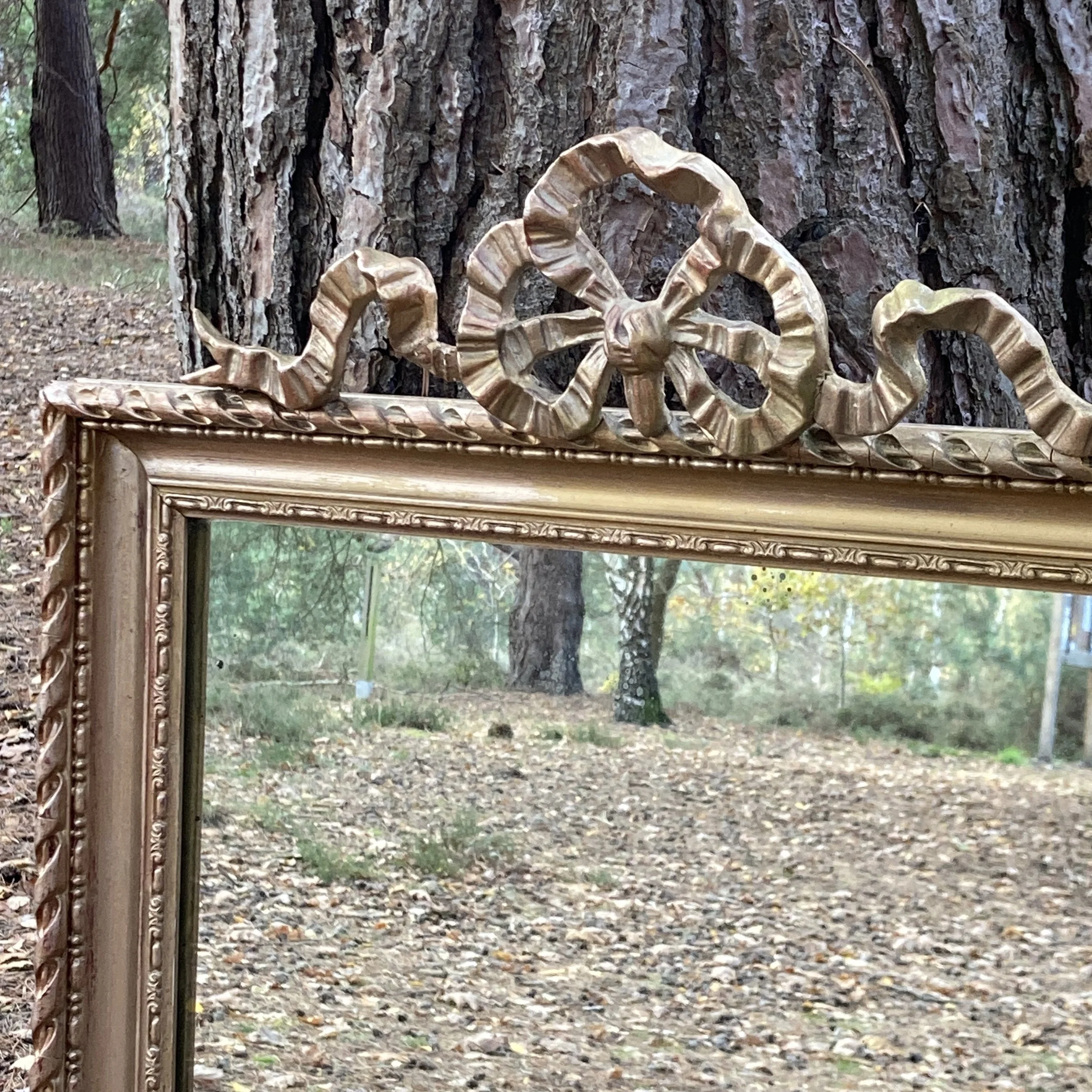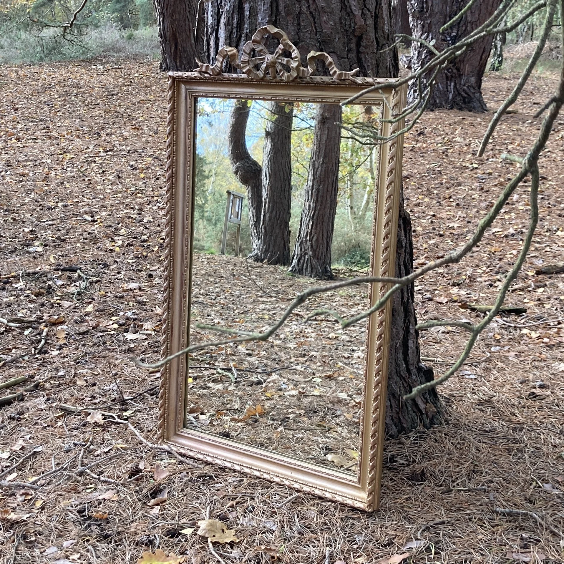 Behold the elegance of a bygone era with this finely moulded Victorian giltwood wall mirror. Crafted in the late 19th century, this mirror is a testament to the grandeur of Victorian design. The gilded frame, boasts intricate mouldings that capture the light and dazzle the eye of all who pass by. At its pinnacle, an ornate ribbon-tied bow cresting adds a touch of whimsy and charm, reminiscent of the period’s love for elaborate decoration.